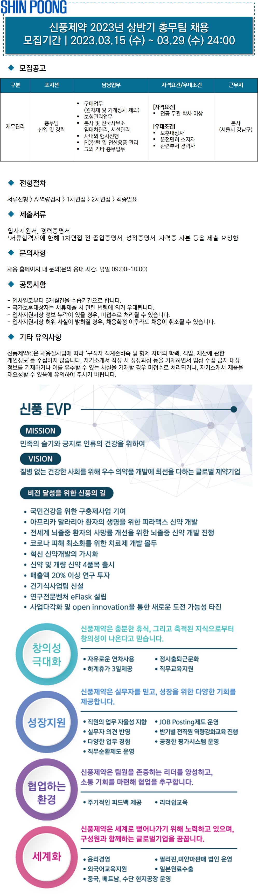 2023년 상반기 재무관리본부 총무팀 신입 및 경력 채용