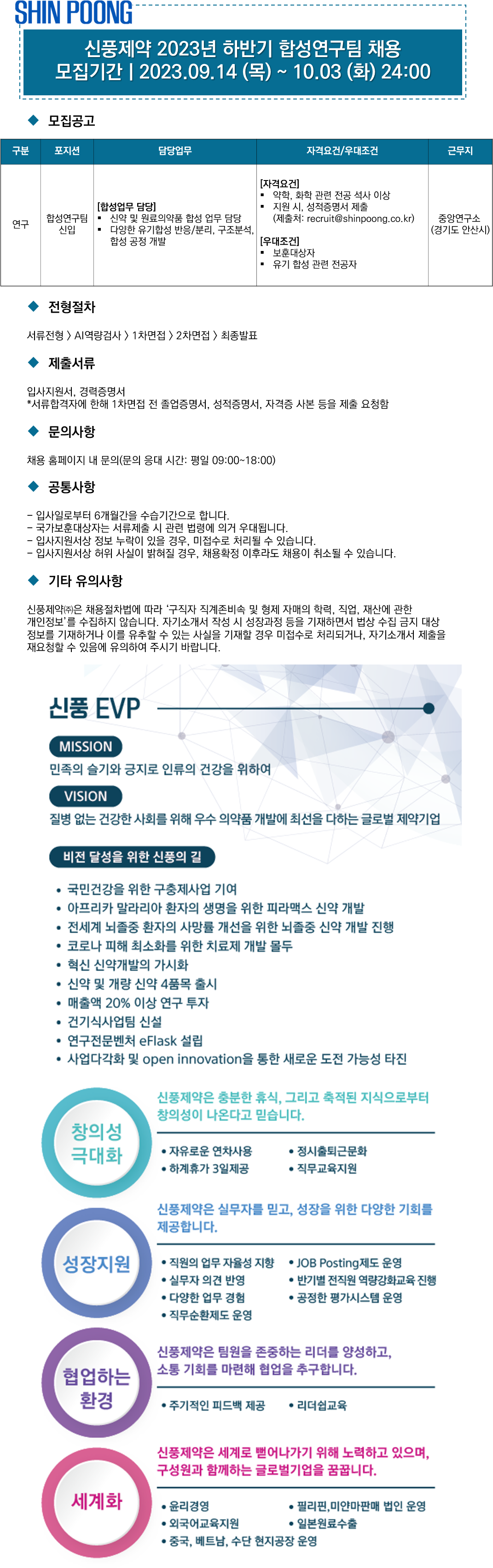 2023년 하반기 연구본부 합성연구팀 신입 채용