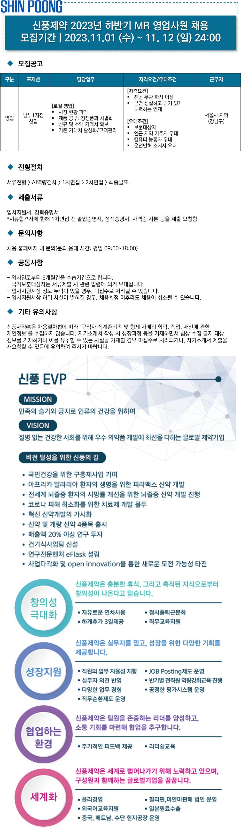 2023년 하반기 영업본부 남부1지점 MR 신입 채용