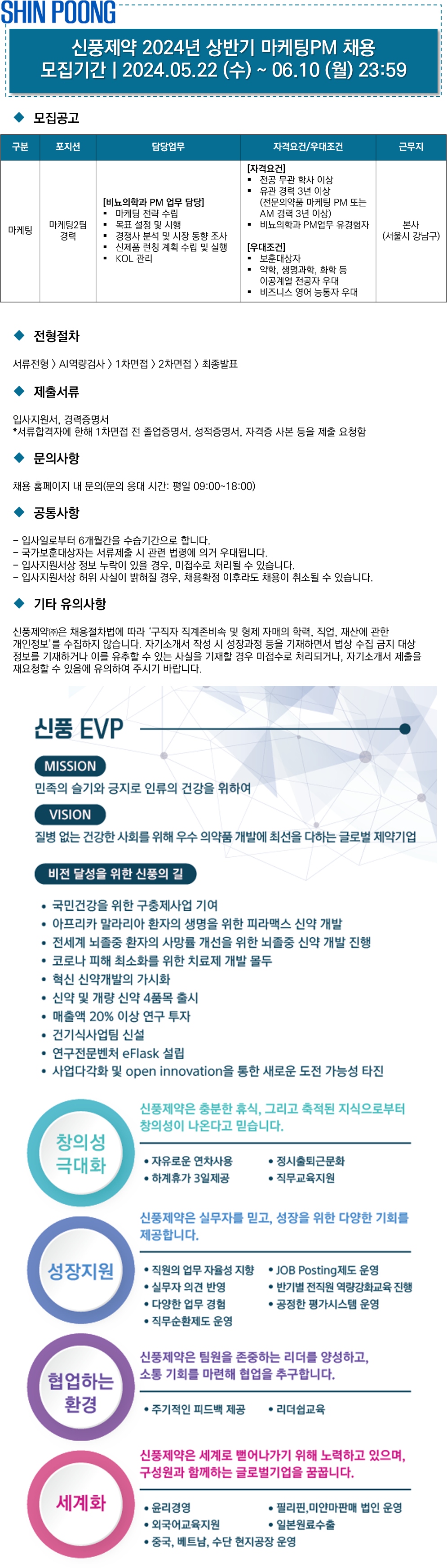 2024년 상반기 마케팅본부 마케팅PM 경력 채용(비뇨의학과)