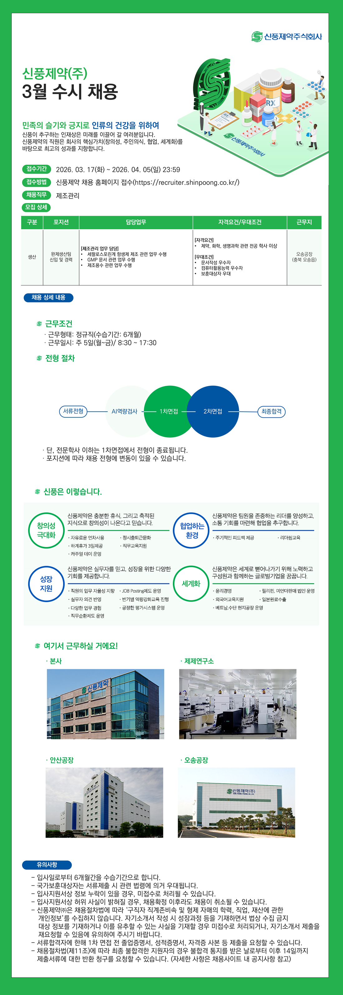 2026년 상반기 생산본부 완제생산팀 신입 및 경력 채용
